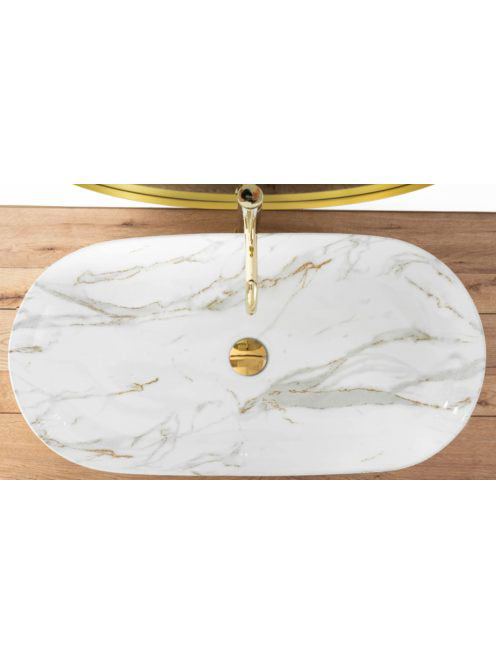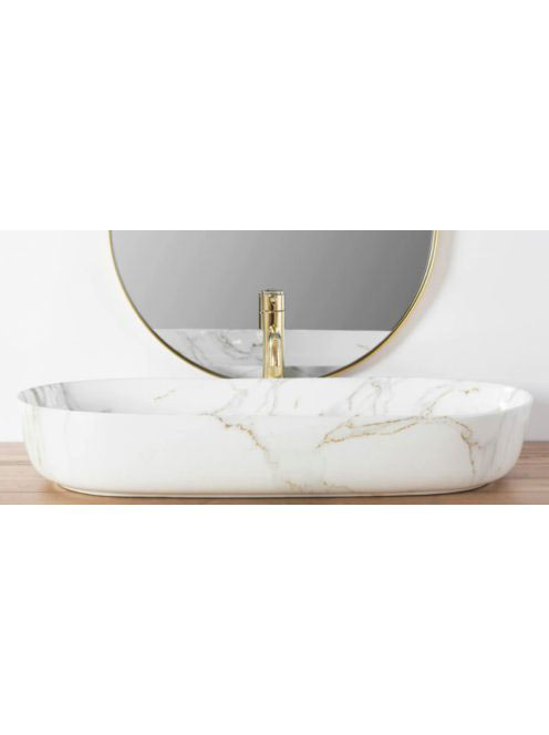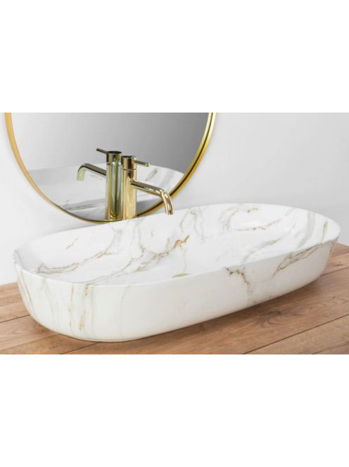 Rea Cleo pultra tehető kerámia mosdótál 81x41 cm, fehér kőminta REA-U8404