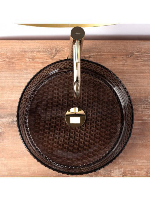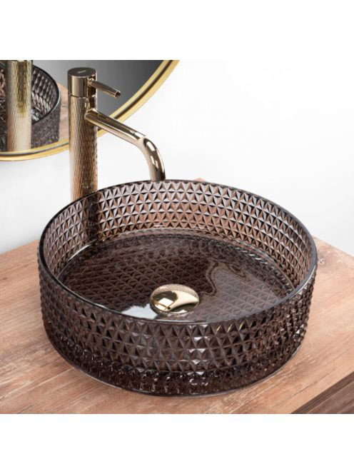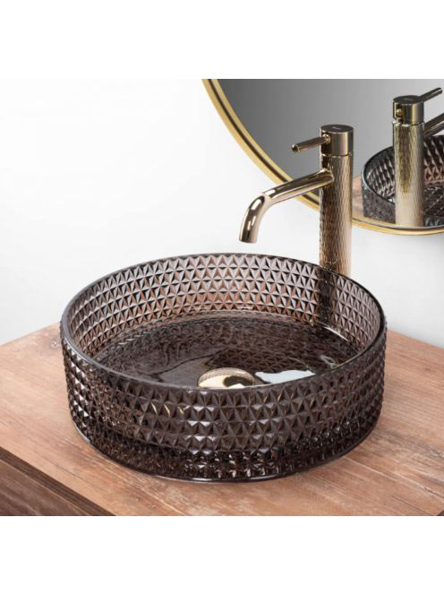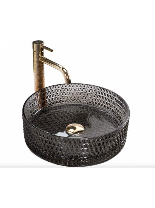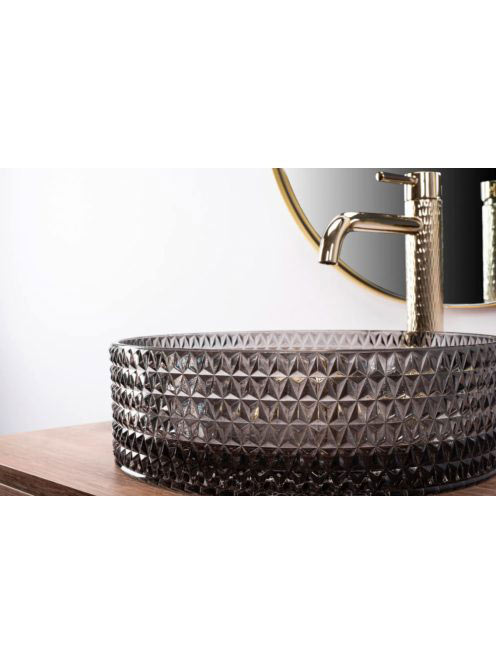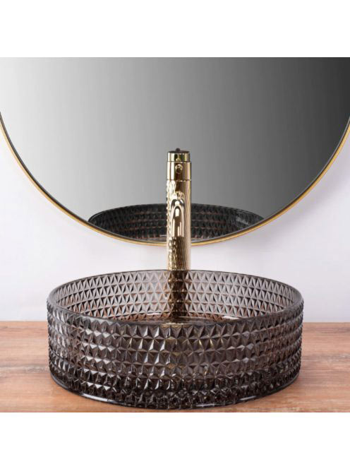 Rea Cristal pultra ültethető üveg mosdótál 35,5x35,5 cm, fekete kristály minta REA-U9671