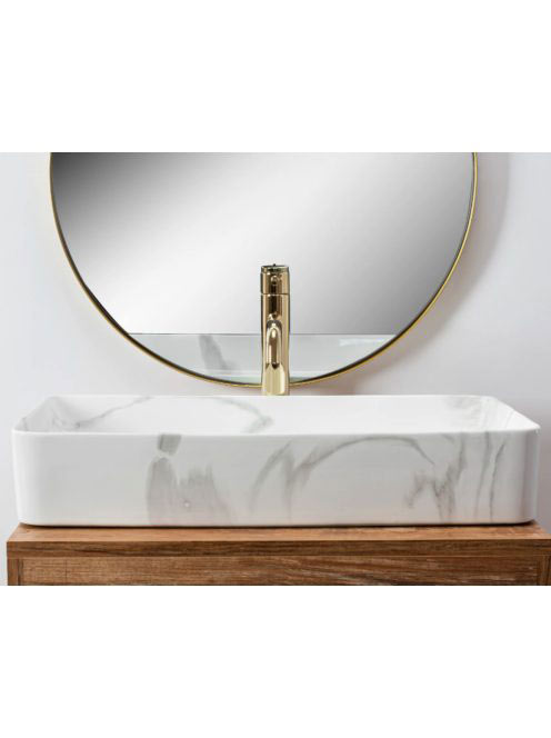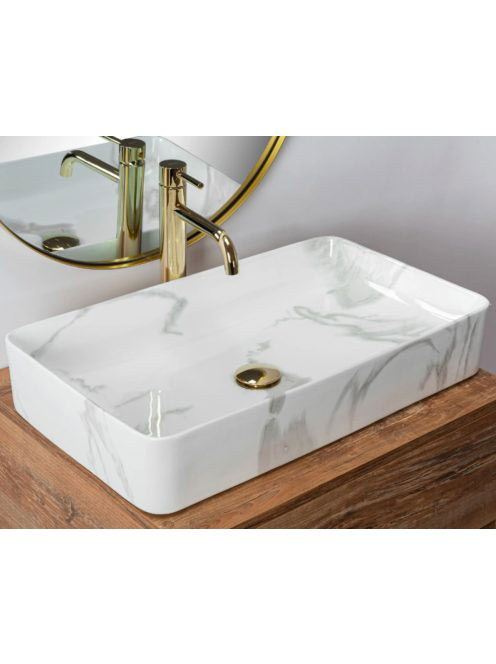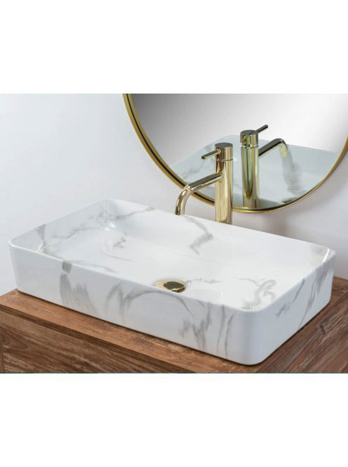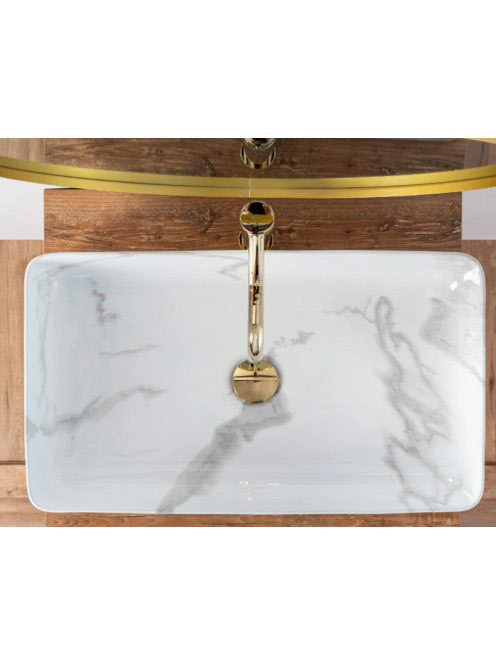 Rea Denis pultra tehető kerámia mosdótál 61,5x35 cm, fehér kőminta REA-U5896