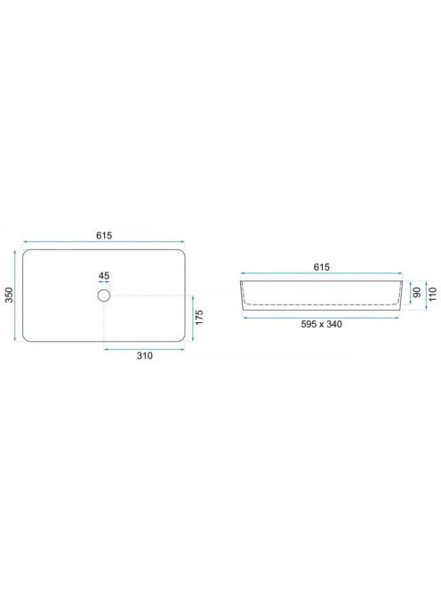 Rea Denis pultra ültethető kerámia mosdótál 61,5x35 cm, fehé