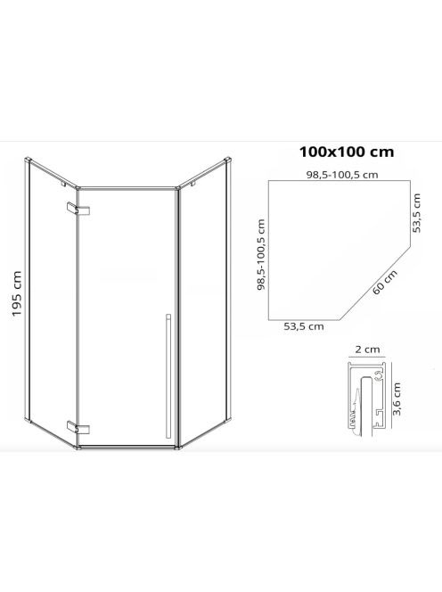 Rea Diamond sarok zuhanykabin 100x195 cm átlátszó üveggel, m