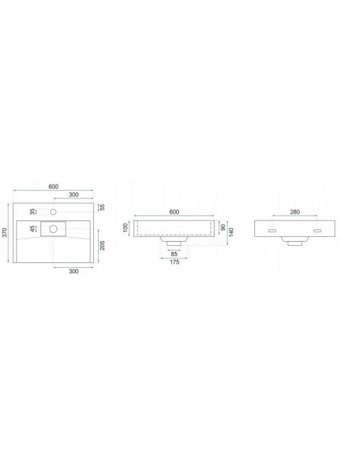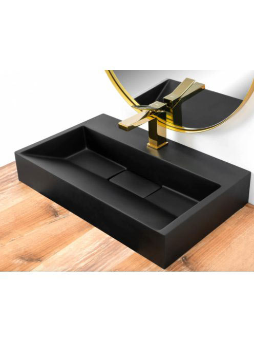 Rea Goya öntött márvány mosdótál 60x37 cm, matt fekete REA-U