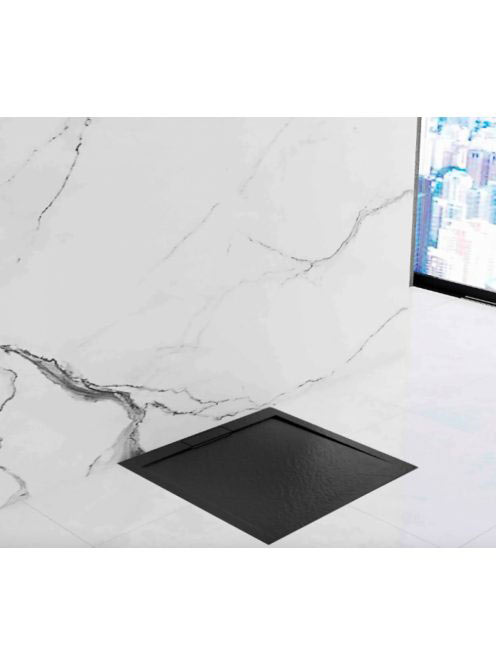 Rea Grand ásványi akril zuhanytálca 90x90 cm szifonnal, fekete REA-K4595