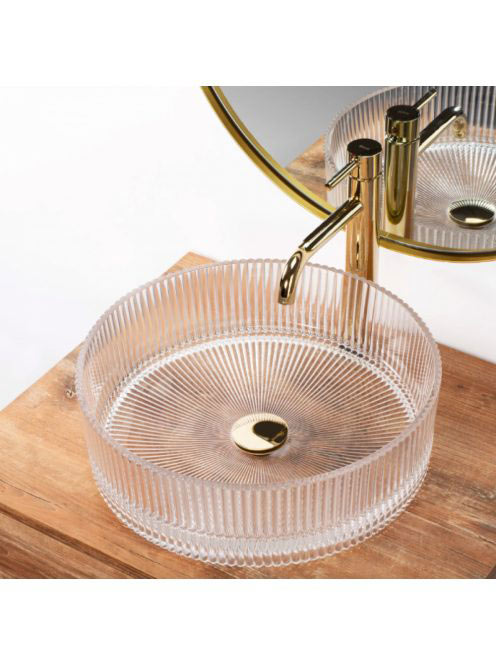 Rea Ingrid pultra tehető üveg mosdótál 40 cm, átlátszó REA-U