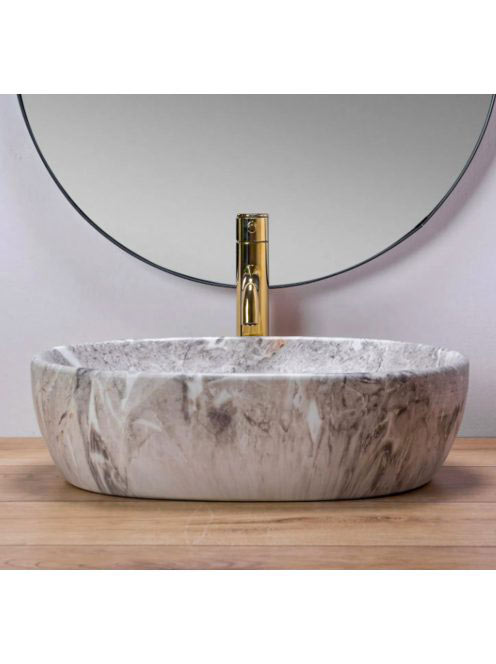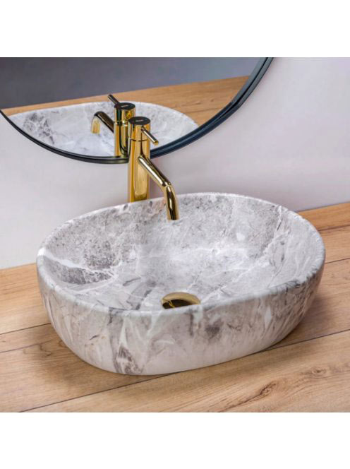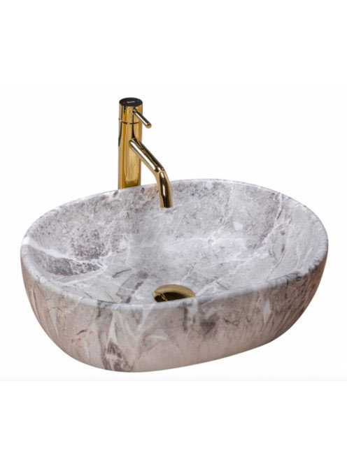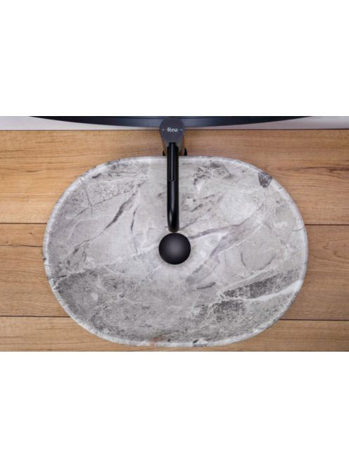 Rea Lara pultra ültethető kerámia mosdótál 48,5x35 cm, matt szürke kőminta REA-U9888
