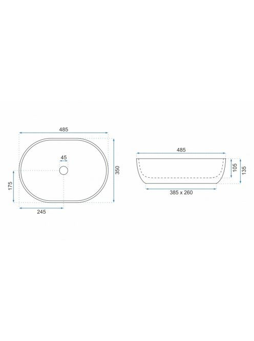 Rea Lara pultra ültethető kerámia mosdótál 48,5x35 cm, mattRea Lara pultra ültethető kerámia mosdótál 48,5x35 cm, matt