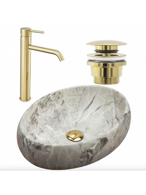Rea Linda kerámia mosdótál 48,5x34 cm matt márványminta, csa