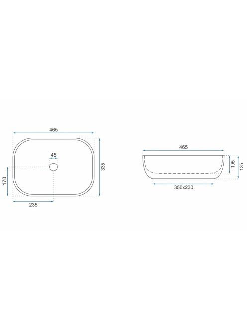 Rea Livia pultra tehető kerámia mosdótál 46,5x33,5 cm, mattRea Livia pultra tehető kerámia mosdótál 46,5x33,5 cm, matt
