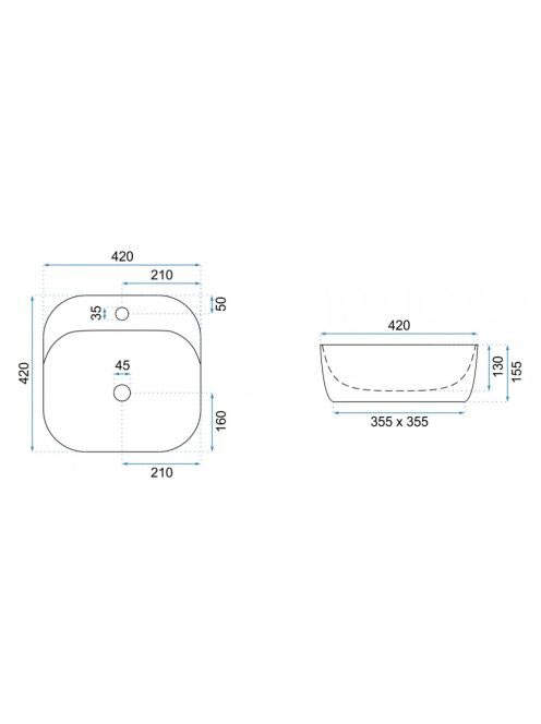 Rea Luiza pultra ültethető kerámia mosdótál 42x42 cm, matt s