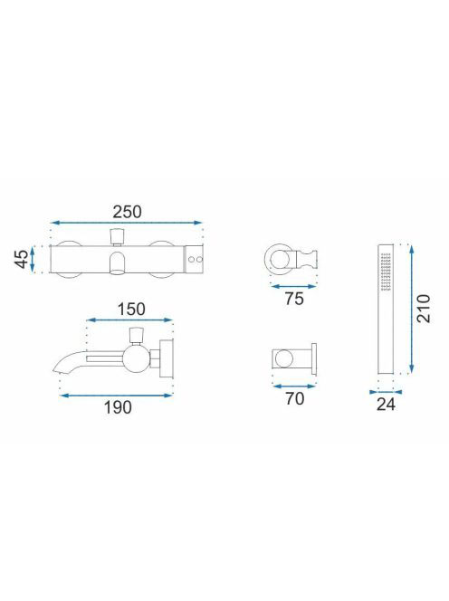 Rea Lungo falra szerelhető fürdőkád csaptelep kézizuhany késRea Lungo falra szerelhető fürdőkád csaptelep kézizuhany kés