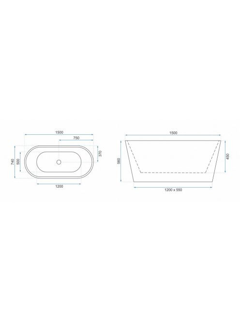 Rea Milano akril fürdőkád 150x74 cm, Click-Clack leeresztőve