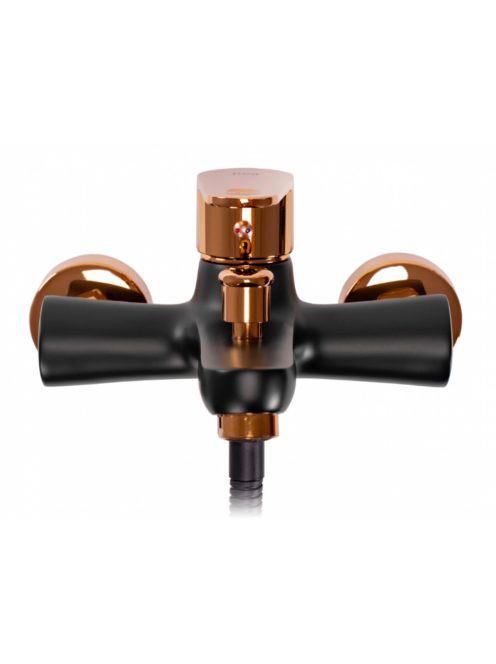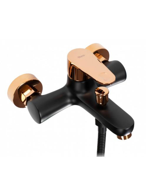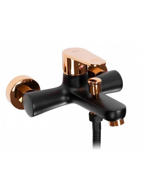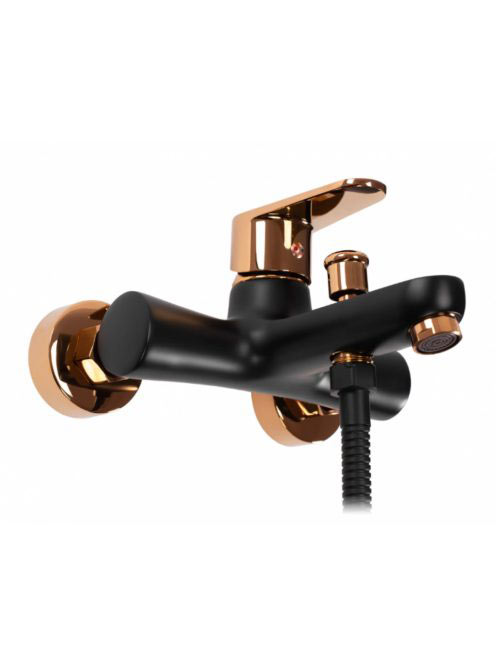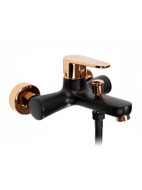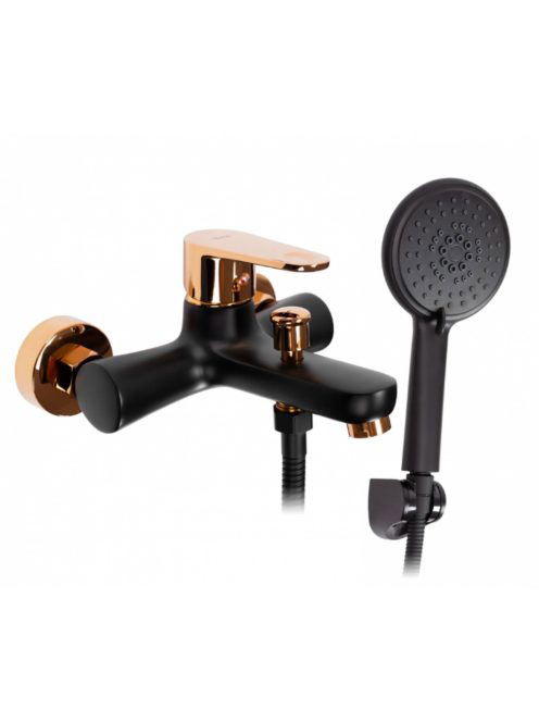 Rea Mild falra szerelhető fürdőkád csaptelep kézizuhany készlettel, fényes fekete/rózsaarany REA-B4813