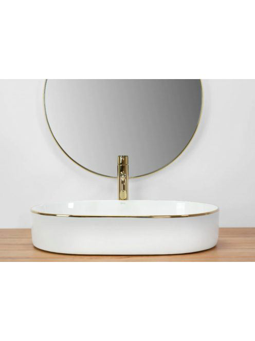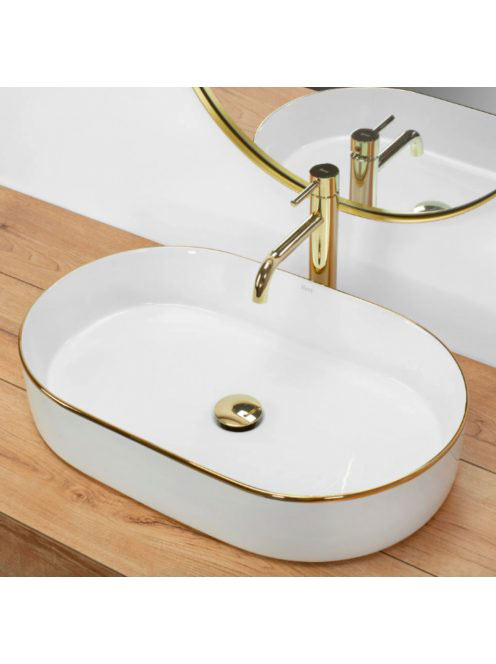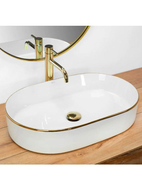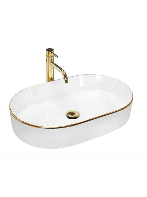 Rea Nadia pultra ültethető kerámia mosdótál 61x38,5 cm, fehér arany éllel REA-U1063