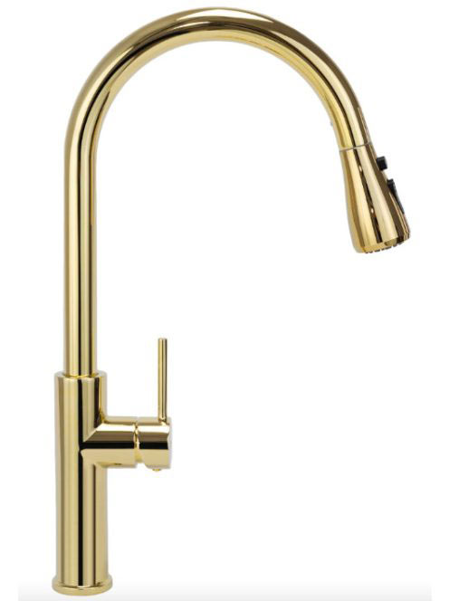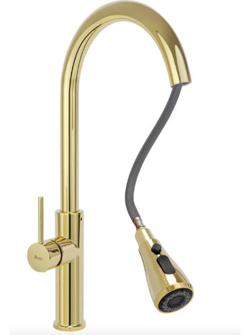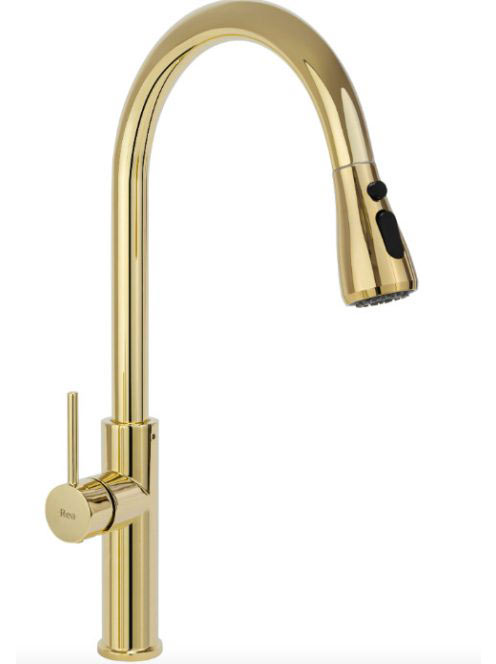 Rea Nest álló konyhai csaptelep kihúzható zuhanyfejjel, fényes arany REA-B2058