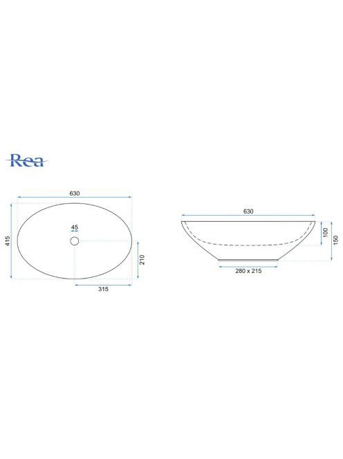 Rea Olga pultra ültethető kerámia mosdótál 63x41,5 cm, fehérRea Olga pultra ültethető kerámia mosdótál 63x41,5 cm, fehér