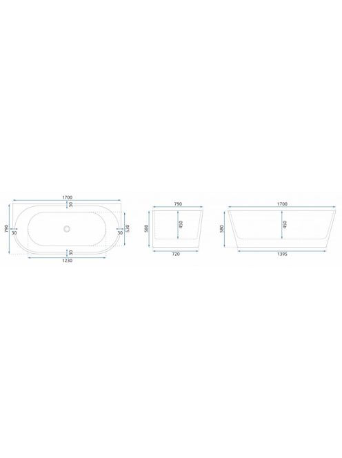 Rea Olimpia akril fürdőkád 170x79 cm, Click-Clack dugóval ésRea Olimpia akril fürdőkád 170x79 cm, Click-Clack dugóval és