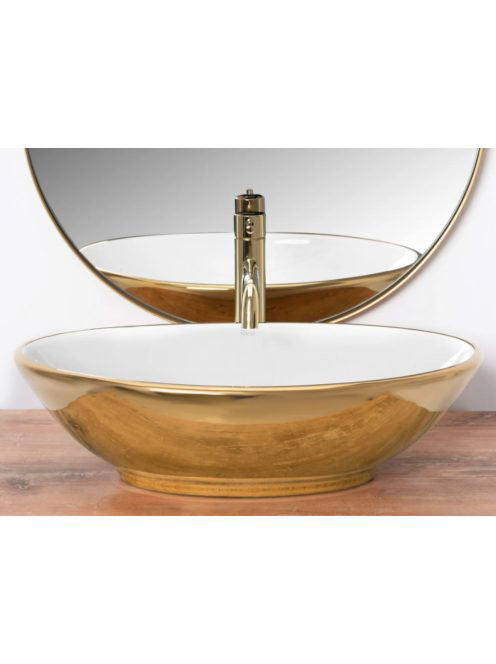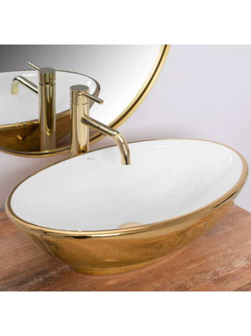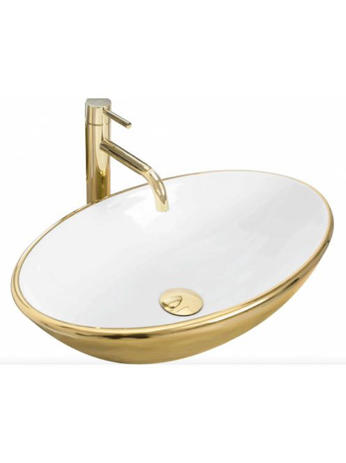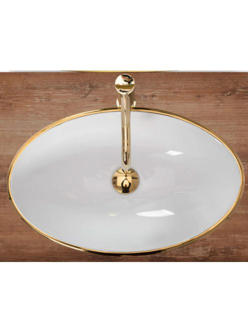 Rea Pamela pultra ültethető kerámia mosdótál 53x33 cm, fehér/arany REA-U6345