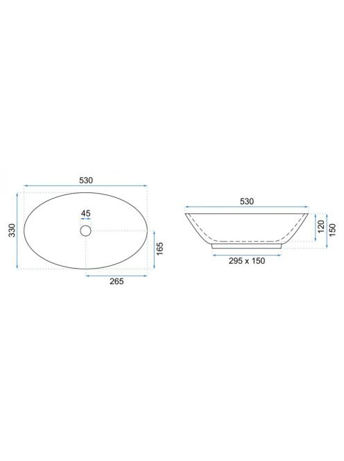 Rea Pamela pultra ültethető kerámia mosdótál 53x33 cm, fehérRea Pamela pultra ültethető kerámia mosdótál 53x33 cm, fehér