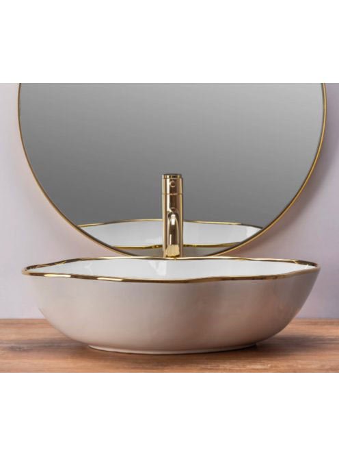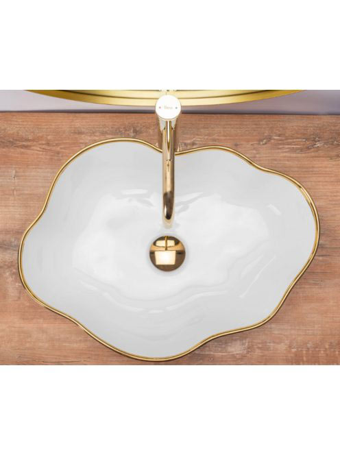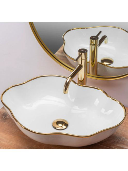 Rea Pearl pultra ültethető kerámia mosdótál 51,5x37,5 cm, fehér/arany REA-U0696