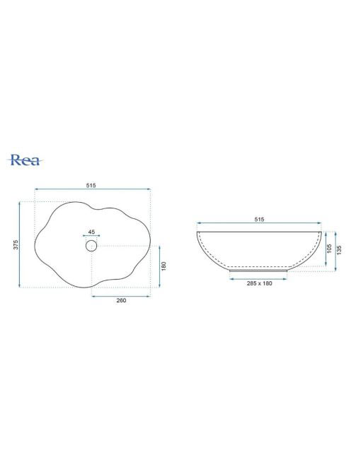 Rea Pearl pultra ültethető kerámia mosdótál 51,5x37,5 cm, feRea Pearl pultra ültethető kerámia mosdótál 51,5x37,5 cm, fe