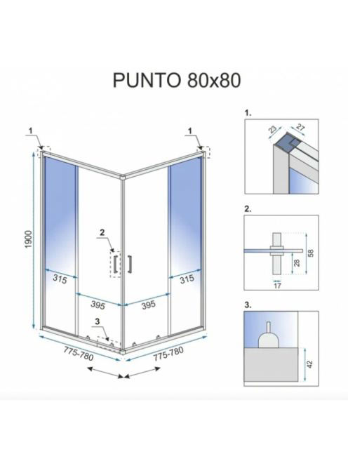 Rea Punto tolóajtós zuhanykabin 80x190 cm átlátszó üveggel,