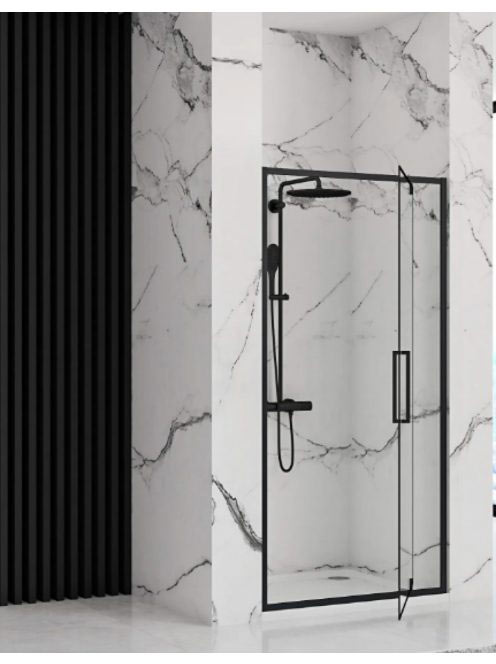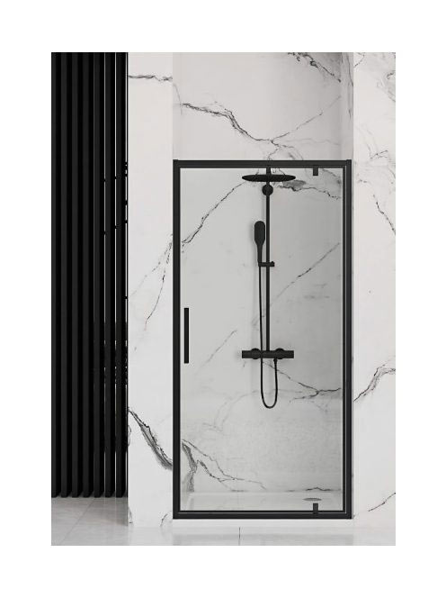 Rea Rapid Swing kifelé nyíló zuhanyajtó 80x195 cm, átlátszó üveggel, fekete profil REA-K6408