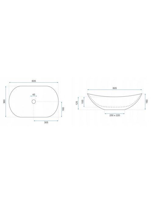 Rea Royal pultra tehető kerámia mosdótál 60,5x36 cm, kőmintá