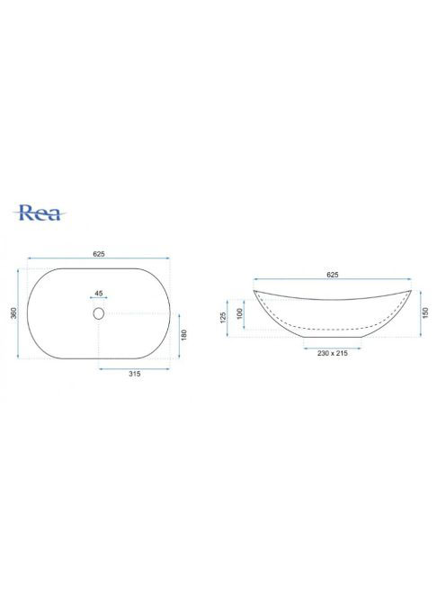 Rea Royal pultra tehető kerámia mosdótál 62,5x36 cm, fekete/
