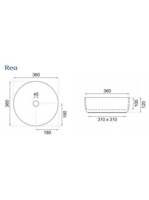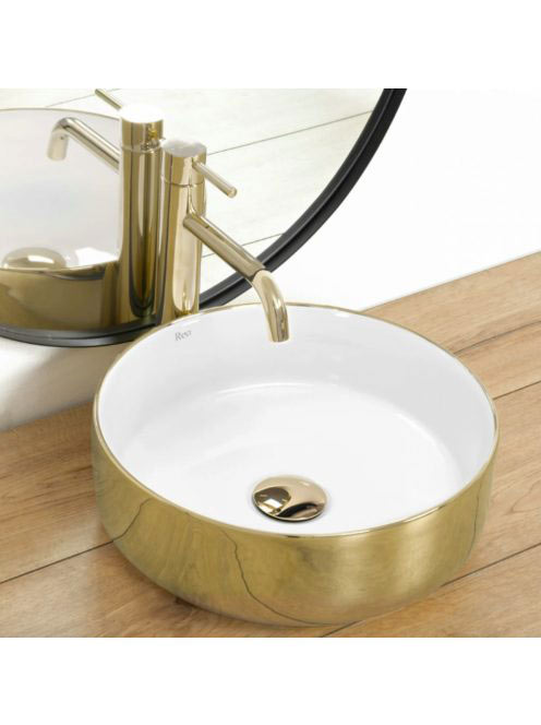 Rea Sami pultra tehető kerámia mosdótál 36x36 cm, fehér arany bevonattal REA-U1801