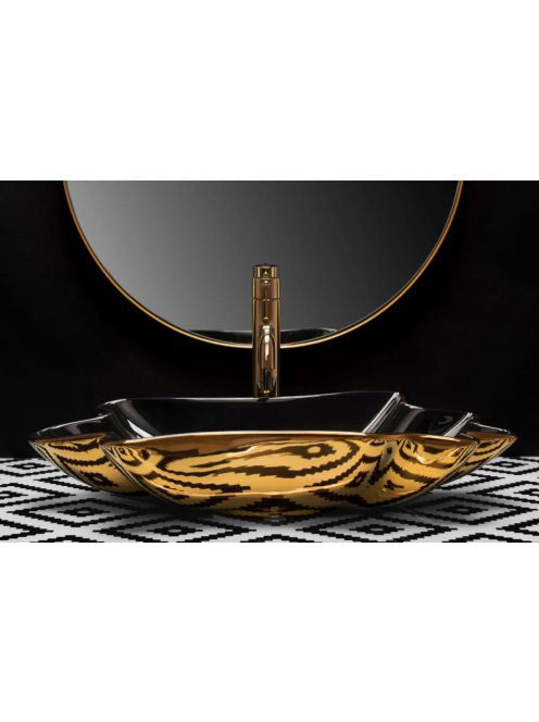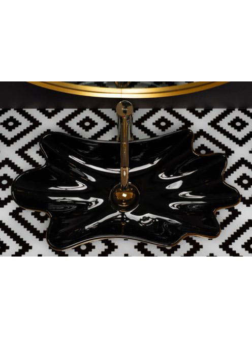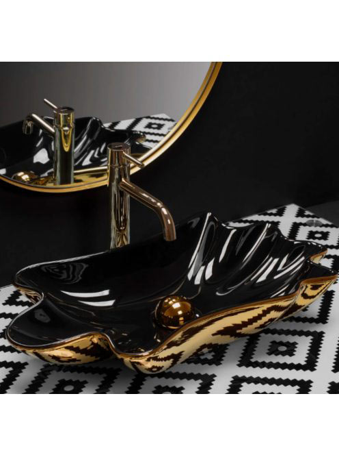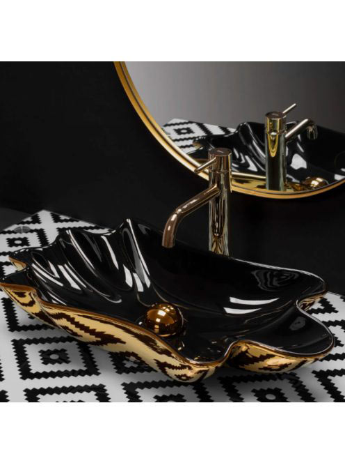 Rea Sea kerámia mosdó kagyló 62x33 cm, click-clack golyós leeresztővel, fekete/arany REA-U3402