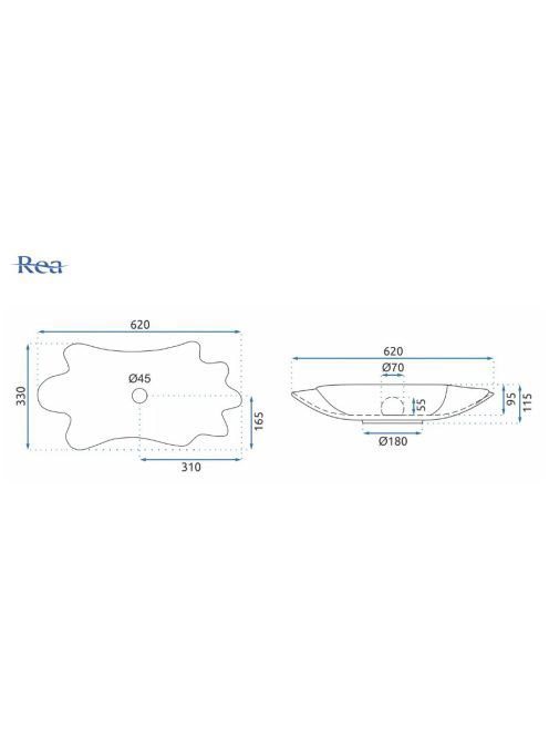 Rea Sea kerámia mosdó kagyló 62x33 cm, click-clack golyós leRea Sea kerámia mosdó kagyló 62x33 cm, click-clack golyós le