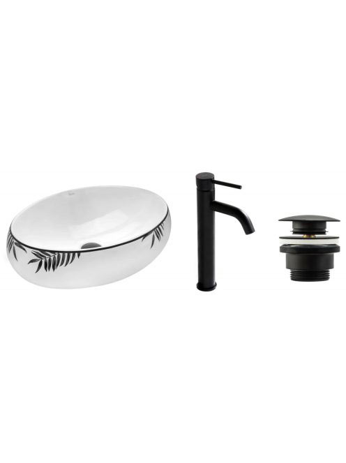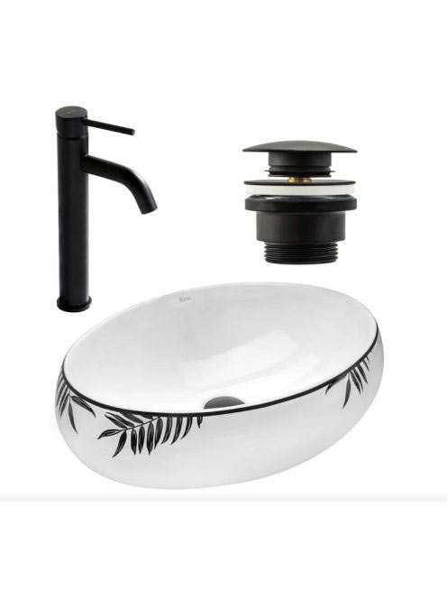 Rea Shila kerámia mosdótál 46,5x31 cm,matt fekete csaptelepp