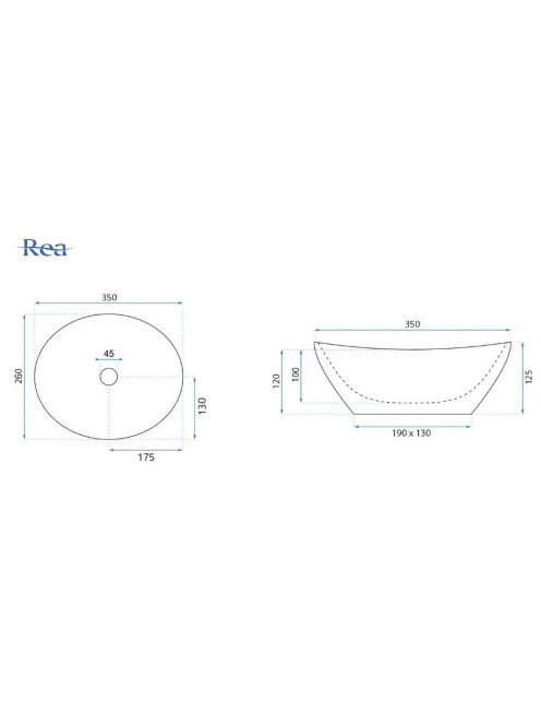 Rea Sofia Mini Aiax pultra tehető kerámia mosdótál 35x26 cm,