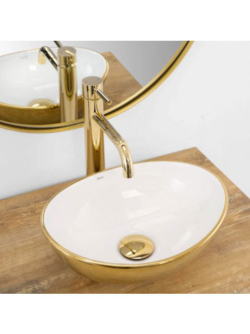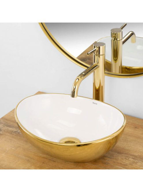 Rea Sofia Mini pultra tehető kerámia mosdótál 35,5x27 cm, fehér / arany REA-U6334