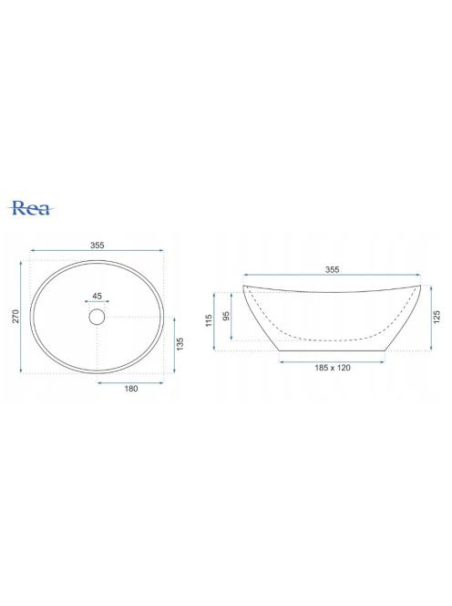 Rea Sofia Mini pultra tehető kerámia mosdótál 35,5x27 cm, feRea Sofia Mini pultra tehető kerámia mosdótál 35,5x27 cm, fe