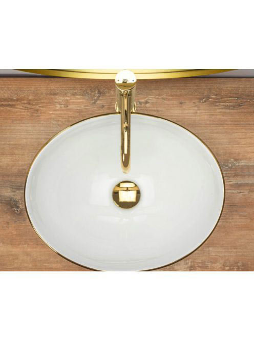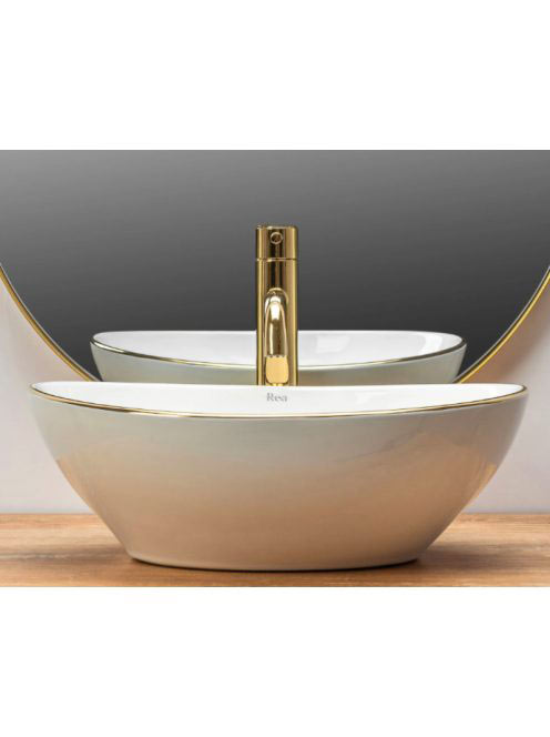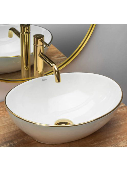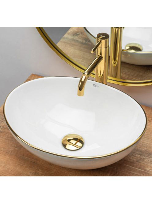 Rea Sofia pultra tehető kerámia mosdótál 41x34,5 cm, fehér / arany REA-U3287