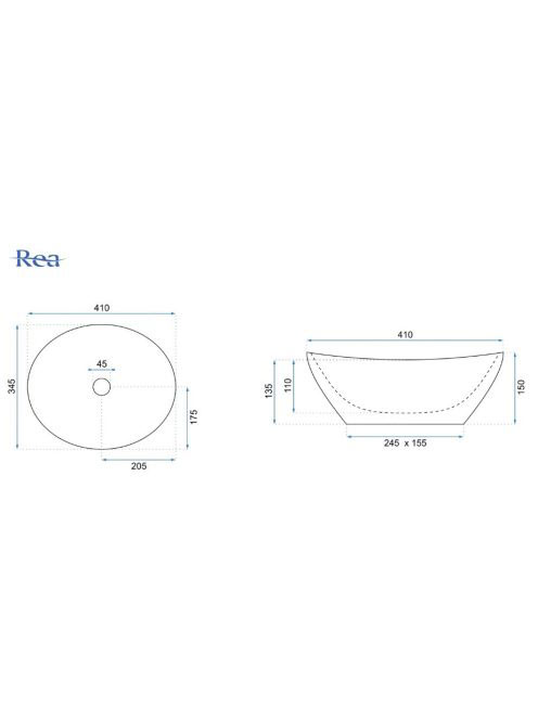 Rea Sofia pultra tehető kerámia mosdótál 41x34,5 cm, fehér /Rea Sofia pultra tehető kerámia mosdótál 41x34,5 cm, fehér /