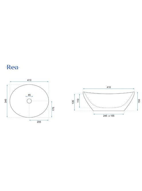 Rea Sofia pultra tehető kerámia mosdótál 41x34,5 cm, fekete