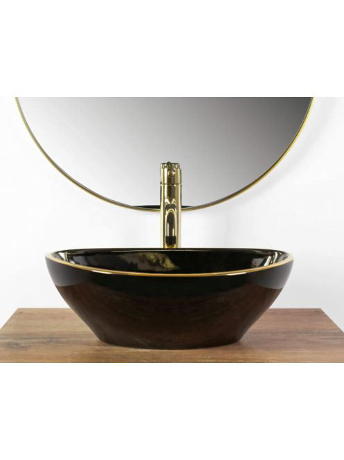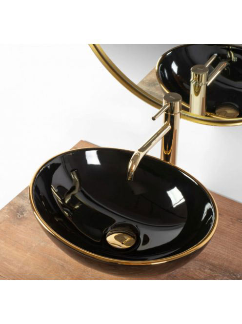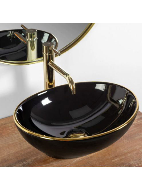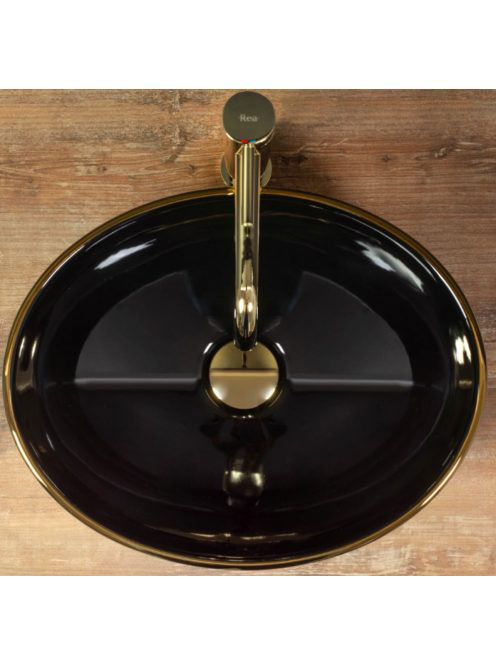 Rea Sofia pultra tehető kerámia mosdótál 41x34,5 cm, fekete / arany REA-U3695