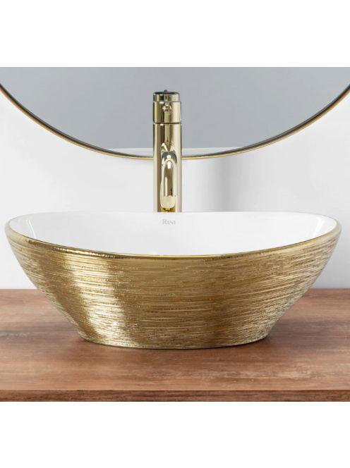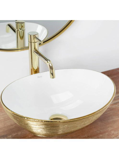 Rea Sofia pultra ültethető kerámia mosdótál 41x34,5 cm, fehér/arany REA-U3697