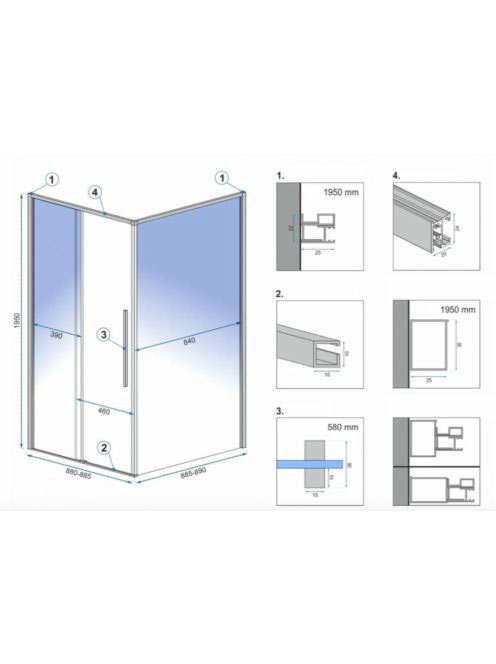 Rea Solar tolóajtós zuhanykabin 90x195 cm átlátszó üveggel,