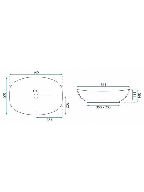 Rea Tango pultra ültethető kerámia mosdótál 56,5x40,5 cm, fe