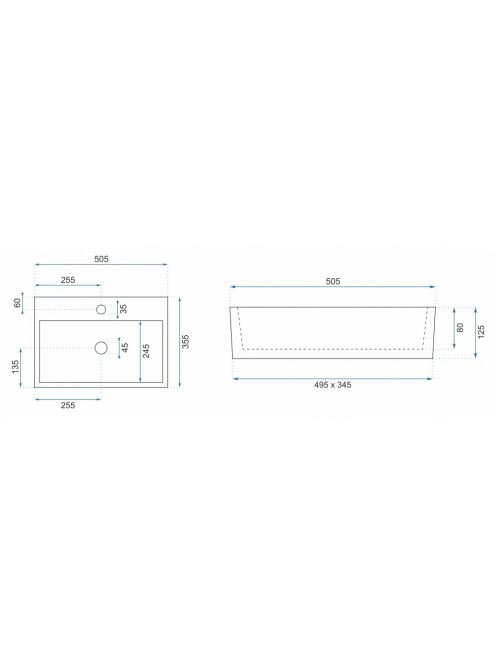 Rea Valeria pultra ültethető kerámia mosdótál 50,5x35,5 cm,