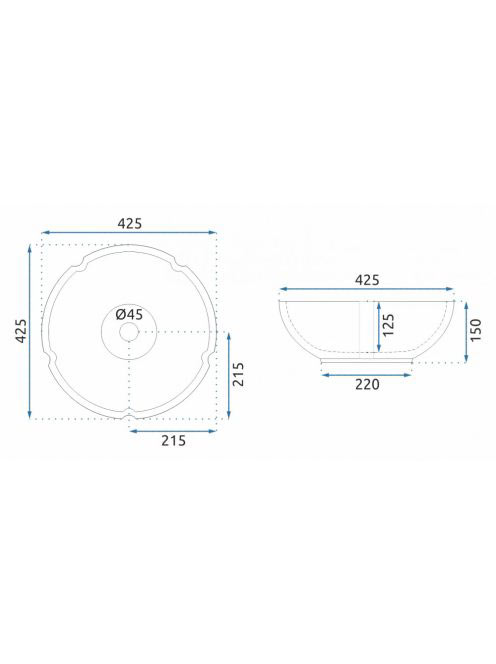 Rea Vivien pultra ültethető kerámia mosdótál 42,5x42,5 cm, k