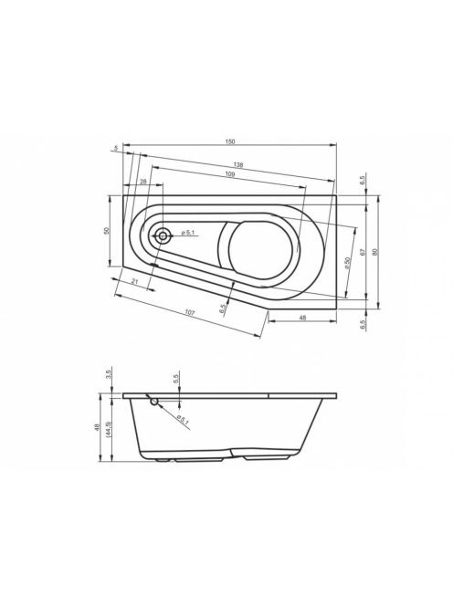 Riho Delta balos fürdőkád 150x80cm BB81 - Fürdőszoba - Kádak