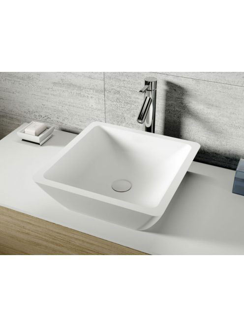 Riho Avella négyzet alakú Solid Surface 42x42 mosdótál, matt fehér W016001105