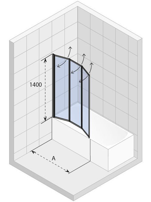 Riho Alta Univerzális kádparaván 100x140 átlátszó üveg, króm