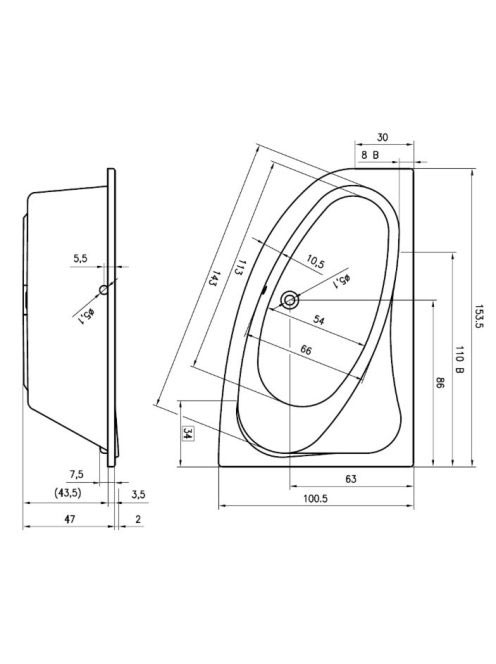 Riho Lyra balos fürdőkád 153x100 BA6800500000000 - Fürdőszob