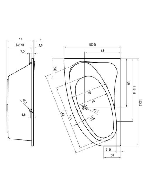 Riho Lyra jobbos fürdőkád 153x100 BA67 - Fürdőszoba - Kádak