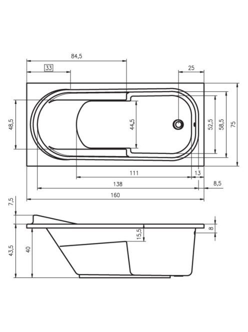 Riho Columbia fürdőkád 160x75cm BA01 - Fürdőszoba - Kádak -